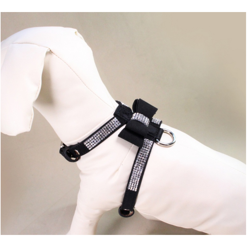 Luxusní postroj pro psa s kamínky - černý vel. S