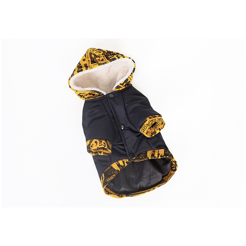 Krásná zimní bunda s kapucí, ve které je kožíšek. Bunda je vyrobena kombinací 2 materiálů - tělo šusťák, kapuce a lemy teplákovina. Kapuce má stylový potisk. Bunda skvěle padne, zapíná se na bříšku na patentky. Záda jsou zdobena decentním nápisem a kapsičkou na pamlsky.