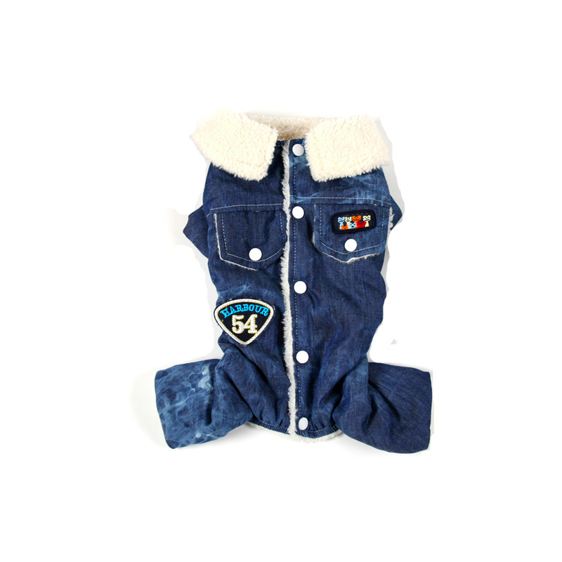 Krásný overal pro pejska je vyteplený kožíškem. Velmi hezké a stylové zpracování, krásně padne. Zapíná se na zádech na patentky. Overal je ve stylu Denim a má na zádech trendy nášivky. Dopřejte svým mazlíčkům tenhle trendy kousek do jejich šatníku.