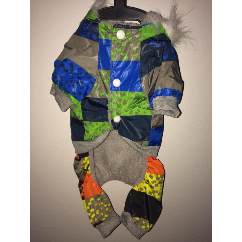 Krásná zimní kombinéza pro pejska z jemného šusťáku. Díky materiálu, kapuce skvěle drží u zad a nepadá. Overal je podšitý teplým kožíškem a zapíná se na patentky.