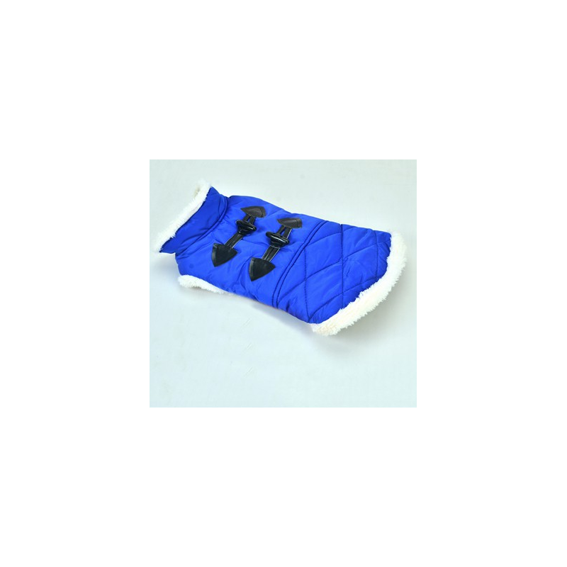 Krásný vyteplený zimní kabátek pro psa se zdobením. Kabátek má střih vesty, je bez rukávů, zapíná se na bříšku na patentky. Je vyteplený fleesem a okraje zdobeny kožešinkou. Délka měřena bez límečku!